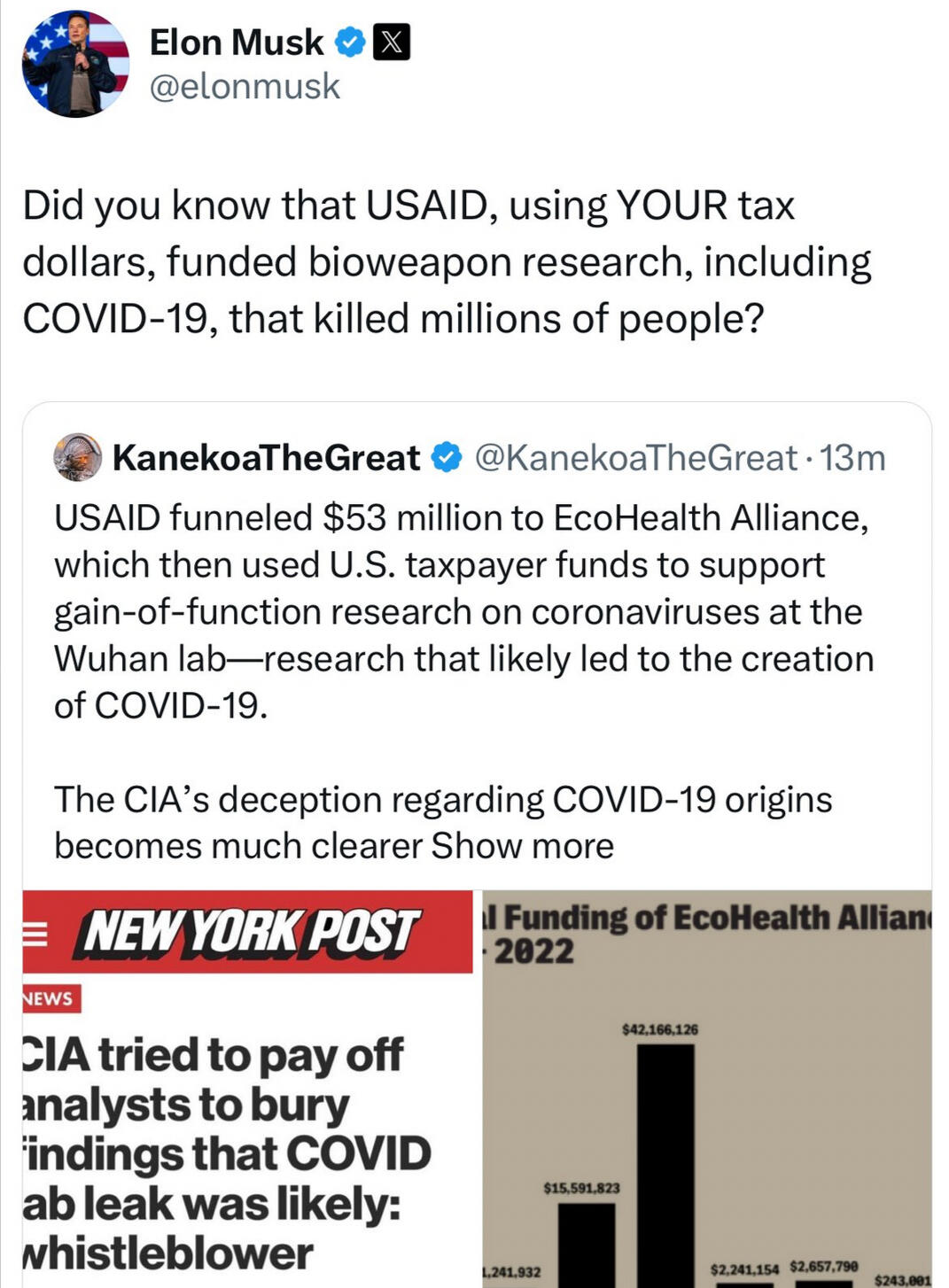 Fast forward to January 2025 and the White House admits that the Covid-19 virus was a lab leak from Wuhan - a bio-weapon.
