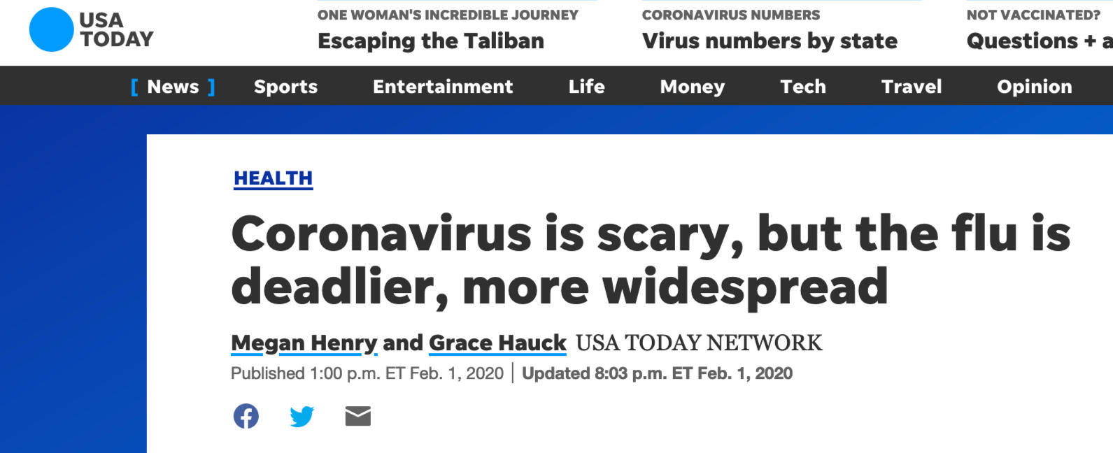 In USA Today, the truth spills over: The flu can be deadlier than Covid.
