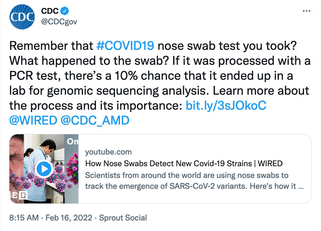 Also, why wait until 2022 for the CDC to admit that the nose swabs were used for gene sequencing analysis? What are they doing with human DNA?