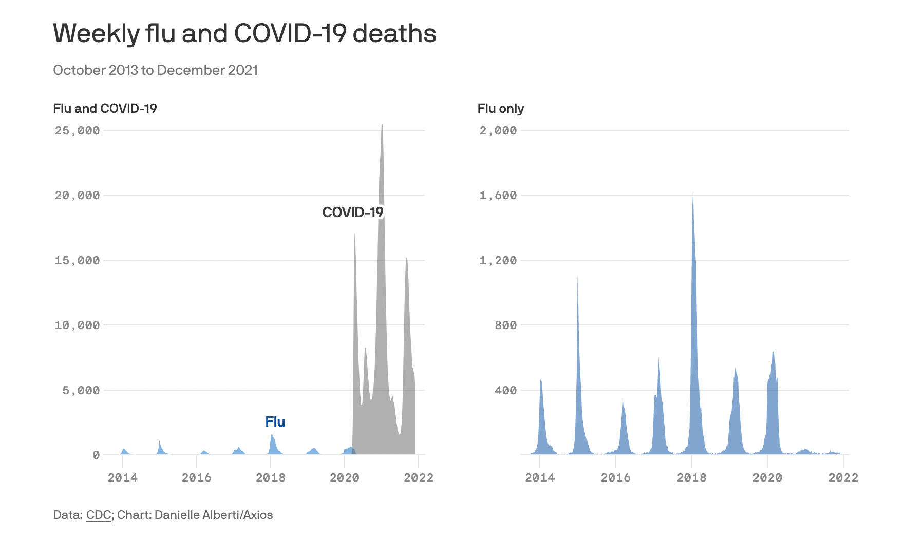 The fact is that 60,000 Americans had been dying weekly, consistently, before and after the Covid scare, from 2019 into 2020. Influenza cases mysteriously plummeted as Covid cases surged dramatically. What a coincidence!